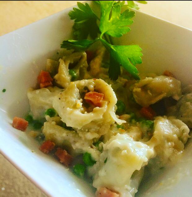 12647510_10205674702200037_3479469376905508201_n Previous Next Published January 30, 2016 at 620 × 636 in Tortellini Two Ways: Brown Butter Sage Sauce and Béchamel, Ham, and Peas